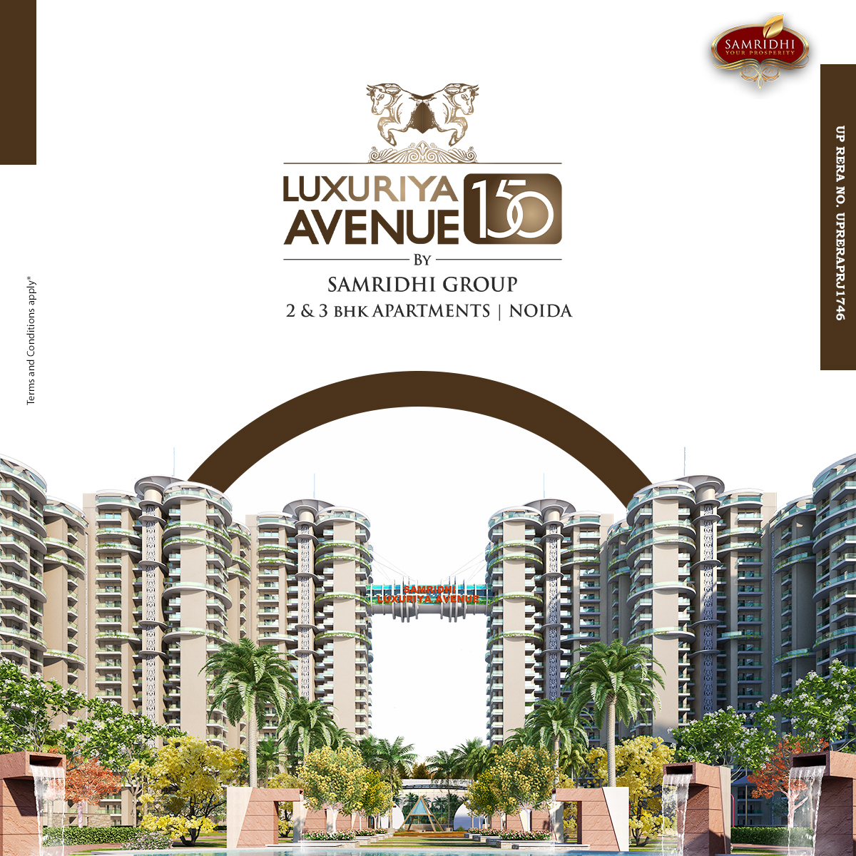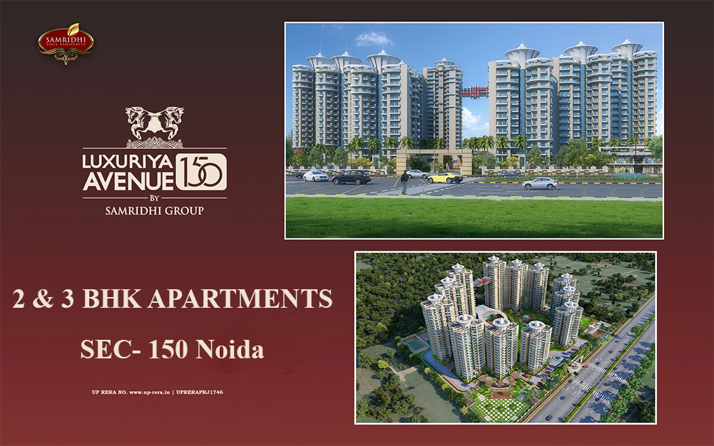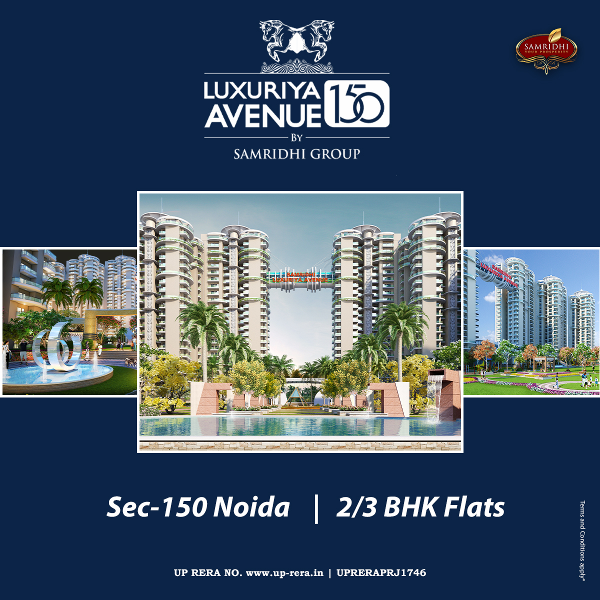 Samridhi Luxuriya Avenue One of the best residential properties, 2bhk apartment & 3bhk apartments in Sector 150 Noida, was created by a renowned architectural firm and built by a respected engineering firm that is ready to rewrite the history of a way of life distinguished by unparalleled magnificence. Samridhi Group offers the luxury residential 2bhk/3bhk flats for sale Being placed in Sector 150 of the Noida Expressway, Luxuriya Avenue houses have an added advantage. The Greater Noida Expressway, Noida Expressway, and Yamuna Expressway are all close to the location of this residential project. A future international airport in New Delhi is also nearby. One of the best projects in housing estates, it can be reached in 15 minutes from Sector 148 Metro Station via the Greater Noida Expressway (1.9 km), Yamuna Expressway (3 km) and other major roads. The brand-new 9.9-acre Samridhi Luxuriya Avenue provides 3 BHK, 2 BHK+Study, and 2 BHK units that are ready to move into. In the entire society, there are about 1200 ready-to-move units. There are just 12 towers with 23 floors in total. Every flat has a corner layout with premium green facing that provides sufficient airflow and illumination. Luxury life is mostly characterised by space. starting with the property's expansive grounds and moving on to the layout of the units and common areas. The floor plans and layouts of these 2 BHK flats, 2+Study, and 3 BHK flats are stunning. 3 BHK 1395 SQFT, 1495 SQFT, 1625 SQFT, and 2 BHK + Study 1165 SQFT, 1245 SQFT, and. The greatest architect created all floor designs and layouts with low density 80% greenest sector. It offers a stress-free property rates, payment schedule, and price list for flat purchases. Prices for 2 BHK + Study flats rates from ₹1.28Cr* to ₹1.64Cr*, while those for 3 BHK rates from ₹1.78Cr* to ₹1.85Cr*. The best project is currently brand-new, ready for habitation, and it has the inventory to sell 2BHK and 3BHK luxury ready to move flats & apartments for sale at reasonable real estate rates. Every project element, including the floor plan, payment schedule, site plan, price list, specifications, and amenities, was speculatively described in our brochure. The Samridhi Luxuriya Avenue has all the modern conveniences include Largest badminton court in the vicinity, Playground, Multi-Purpose Hall, Library, Café & Lounge, Swimming Pool, Creche, Spa, Yoga Center, Board Gamerooms, Meditation Area, Gym, Courts for Squash and Lawn Tennis, Cricket Pitches, Acupressure Pathway, Amphitheatre, and a Special Area for Senior Citizens. There are numerous benefits to choosing us, such flats with views of a road or a green area, an elegantly designed lobby, first-rate carpets, sizable balconies, etc. So, buy your own dream house today and live luxury with your family.